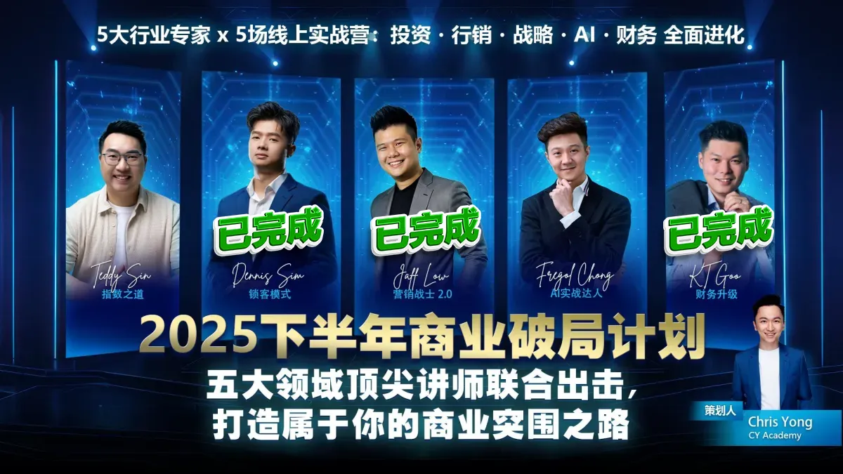 欢迎你先报名锁定席位。我们了解每个人都有不同安排,即使无法出席全部场次,只要你参与其中一场,都能收获满满实战技巧。每一位讲师的内容都是独立成章、各有重点,你可以选择对你最有帮助的场次优先参与。当然,如果你能完成全部5场挑战,就有机会解锁我们为完课者准备的专属奖励。